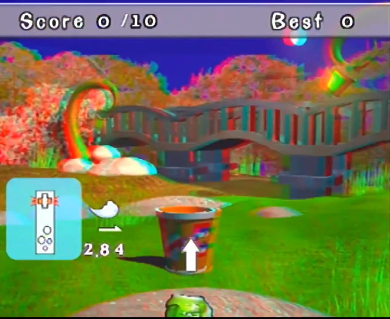 A game where you toss garbage into a trash can a certain amount of times to win. There are three settings to play in: an area with a sunset, a field, and a desert.